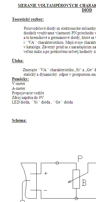 Zmerajte ´´VA´´ charakteristiku „Si“ a „Ge“ diódy a z nameranej charakteristiky určite statický a dynamický odpor v priepustom smere.