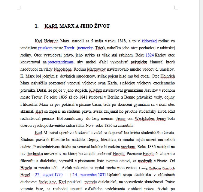 Práca mapuje osobnosť Karla Marxa, základné východiská marxizmu a hlavné témy diela Kapitál v kontexte kritiky kapitalistického hospodárstva. Zámerom je ukázať, ako sa Marxove životné skúsenosti, publicistická prax a dobové politické udalosti premietli do jeho teoretických záverov o fungovaní spoločnosti, práci a vlastníctve.