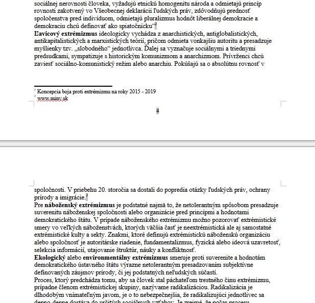 Jadro textu objasňuje základné pojmy, pričom upozorňuje, že legálna definícia extrémizmu v slovenskom trestnom práve explicitne neexistuje a pracuje sa najmä s kategóriami trestných činov, priestupkov, extrémistickej skupiny a extrémistického materiálu. Uvádza definíciu extrémizmu ako verbálnych, grafických či fyzických aktivít s prvkami intolerancie a rozlišuje pravicový, ľavicový, náboženský a ekologický extrémizmus. Osobitnú pozornosť venuje procesu radikalizácie, možnostiam včasnej intervencie a faktorom, ktoré radikalizáciu urýchľujú, najmä v prostredí internetu a sociálnych sietí, kde sú ohrozenou skupinou mladí ľudia.