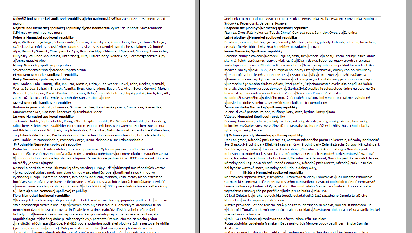 Referát sa ďalej zaoberá politickým systémom a štátnym zriadením Nemecka, so zameraním na federatívne usporiadanie, úlohu spolkových krajín a fungovanie hlavných orgánov štátnej moci. Samostatná pozornosť je venovaná hospodárstvu, priemyslu, vede, technológiám a zahraničným vzťahom. Text poskytuje ucelený, prehľadný a zrozumiteľný obraz o Nemecku, ktorý je vhodný ako študijný podklad alebo informatívny obsah určený na webové zverejnenie.